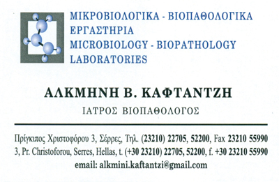 ΙΔΙΩΤΙΚΟ ΔΙΑΓΝΩΣΤΙΚΟ ΕΡΓΑΣΤΗΡΙΟ Α. ΚΑΦΤΑΝΤΖΗ ΙΚΕ - ΚΑΦΤΑΝΤΖΗ ΑΛΚΜΗΝΗ