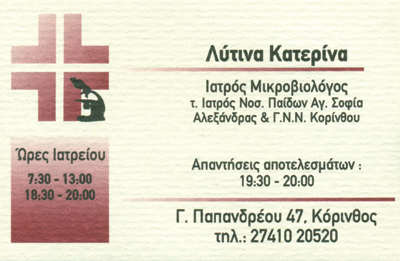 Ωράριο:Δευτέρα - Παρασκευή 07:30 - 13:30 & 18:30 - 20:00